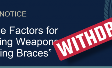 On December 23rd, ATF posted a document to its website indicating that its recently published Objective Factors for Classifying Weapons with “Stabilizing Braces” is withdrawn. The withdraw notice indicates that “[u]pon further consultation with the Department of Justice and the Office of the Deputy Attorney General, ATF is withdrawing, pending further Department of Justice …